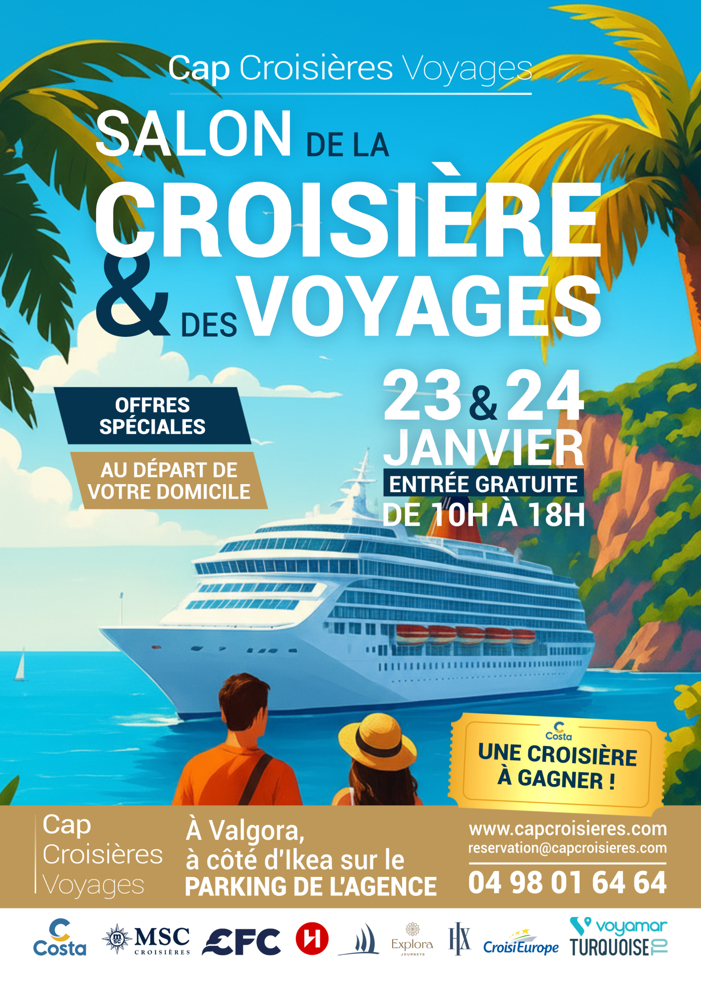 - 23 et 24 janvier de 10h à 18h : SALON DE LA CROISIERE ET DES VOYAGES