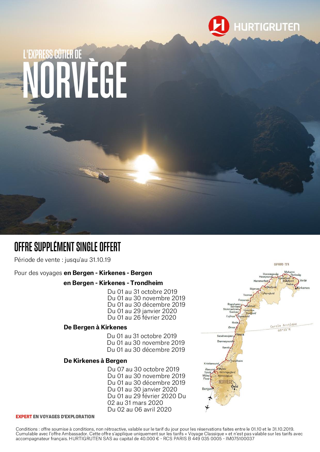 Sur une sélection de départs d'octobre 2019 à mars 2020 : supplément single offert.