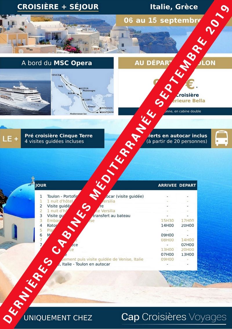 Réservez dès maintenant* vos vacances au départ de Marseille (départ de Gênes possible), entre le 16/03/2019 et le 02/11/2019 !