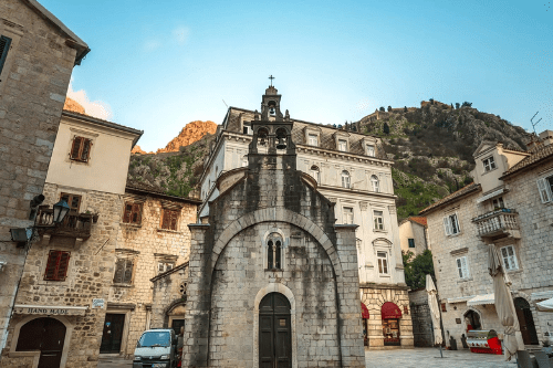 5. Eglises Saint-Nicolas et Saint-LucCes deux édifices situés face-à-face montrent la diversité religieuse que l’on peut trouver à Kotor ou dans le passé. L’église Saint Luc du 12ème siècle a une dénomination à la fois catholique et orthodoxe puis témoigne des relations serbes et croates à Kotor autrefois. Elle est très charmante et elle est le rare monument de la ville à avoir résisté au séisme qui a frappé Kotor. L’église Saint-Nicolas, quant à elle, est beaucoup plus récente (20ème) et cet édifice orthodoxe serbe met en avant un drapeau serbe sur la devanture.